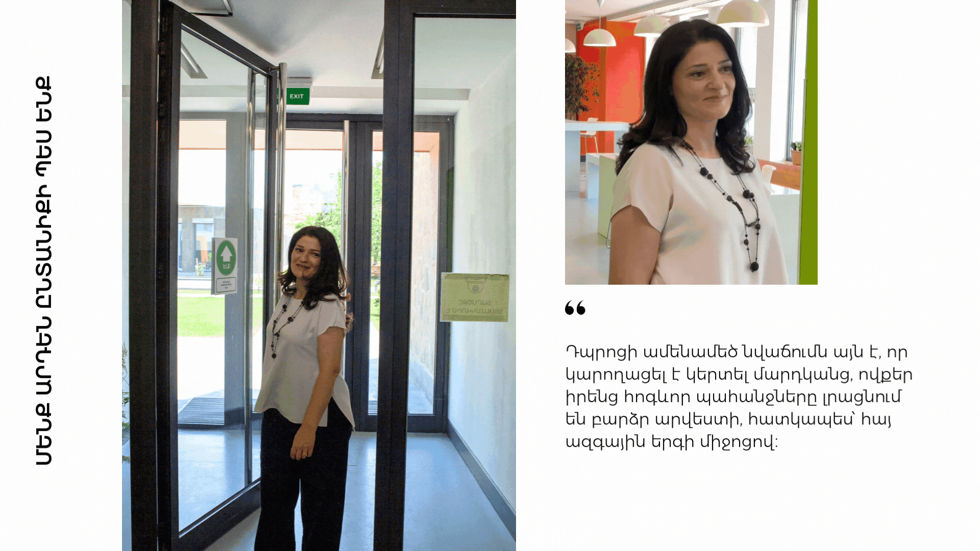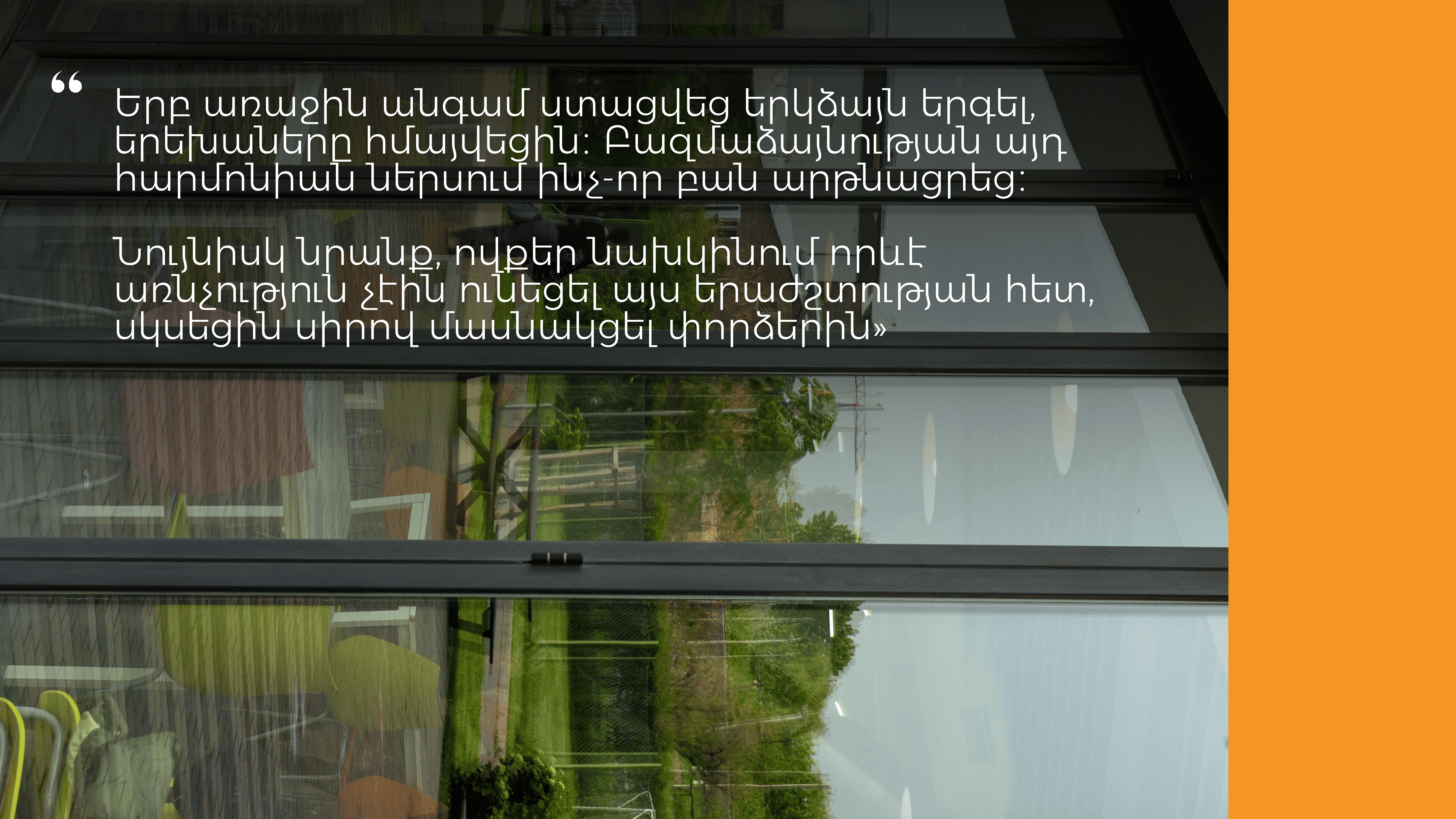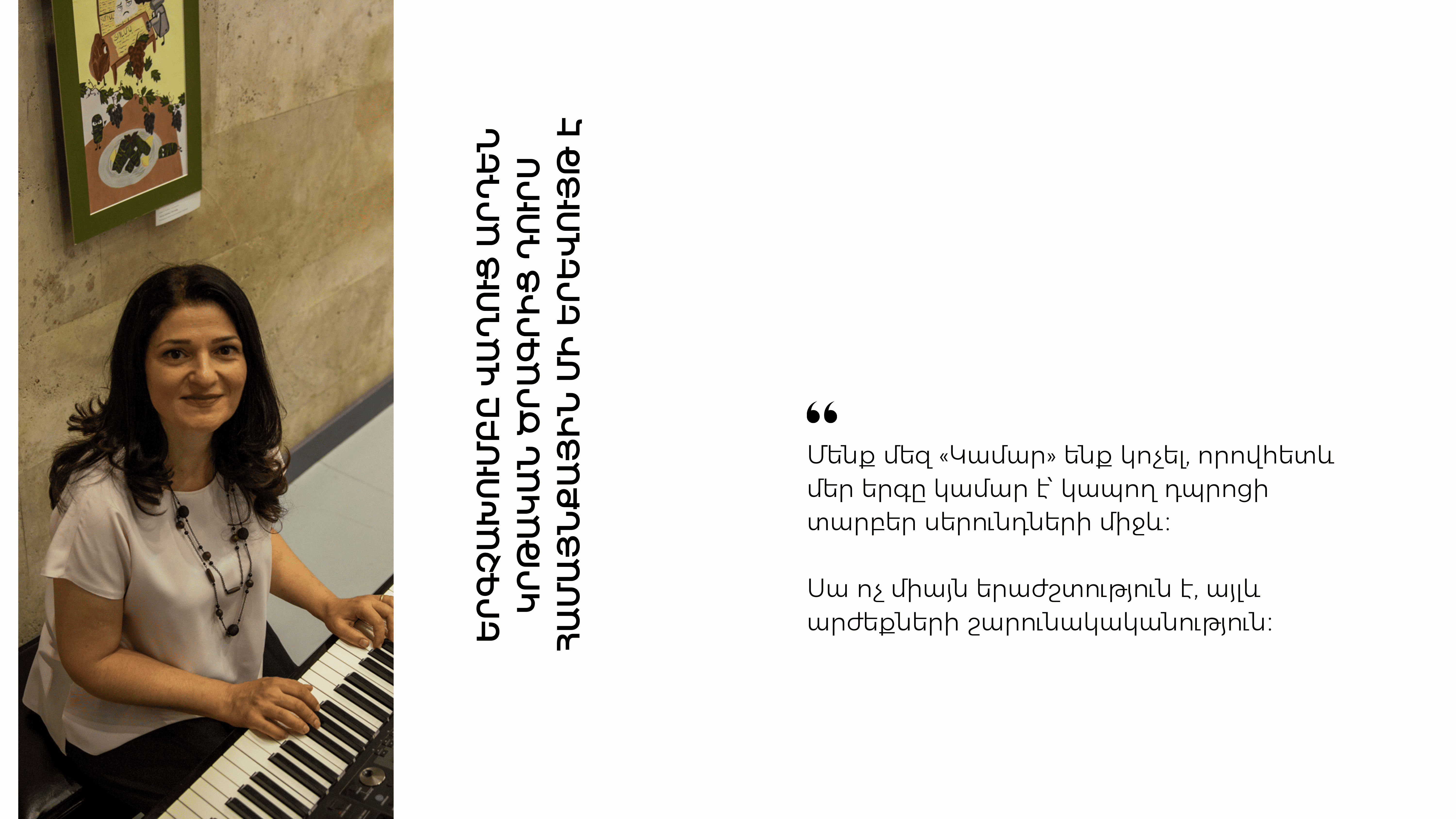 «Երբ մենք երգում ենք միասին, դա պարզապես երաժշտություն չէ։ Դա կամար է, որ կապում է մեզ անցյալին, ներկային ու ապագային»,— նշում է Անահիտը։
